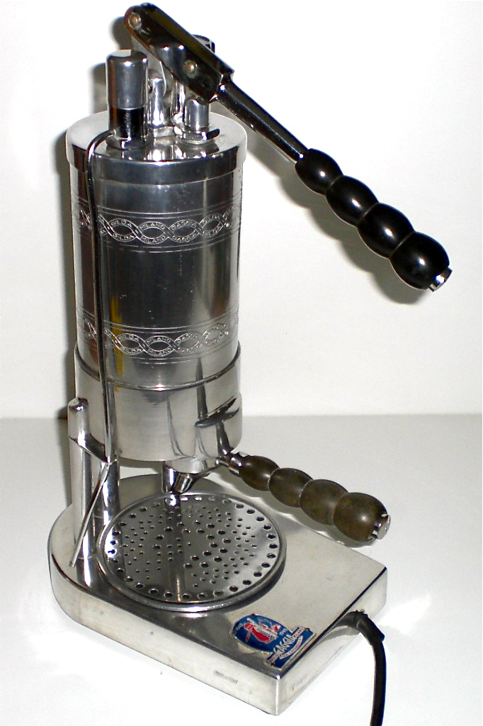 Lompatan besar berikutnya terjadi pada tahun 1940-an, berkat Achille Gaggia, seorang penemu asal Milan. Gaggia mengembangkan mesin yang menggunakan tuas piston pegas untuk menghasilkan tekanan tinggi (sekitar 9 bar), alih-alih mengandalkan uap. Inovasi ini memungkinkan ekstraksi minyak dan rasa kopi yang lebih baik, menghasilkan espresso yang lebih kaya, aromatik, dan dengan crema yang lebih tebal. Mesin Gaggia merevolusi industri kopi dan menetapkan standar untuk mesin espresso modern.